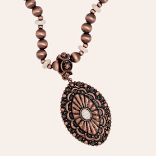 Southern Grace Copper & Cream Stone Concho Pendant Beaded Necklace