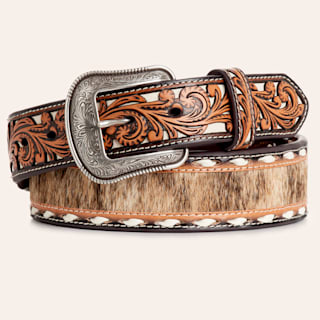 Rafter C Men's Hair-On & Brown Tooled Leather Silver Buckle Belt