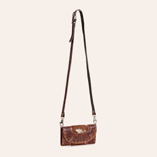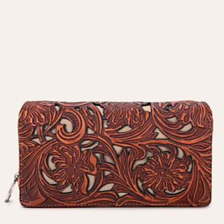 Montana West Trinity Ranch Brown Floral Tooled Leather Clutch Wallet