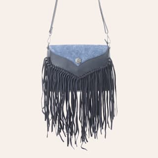 Myra Bag Wild West Denim Floral Tooled Leather Fringe Crossbody Bag