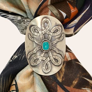 Fringe Scarves Silver & Turquoise Boot Stitch Scarf Slide