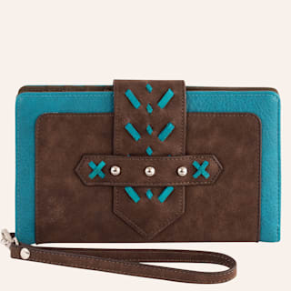 Catchfly Brown & Turquoise Stitched Slim Wallet