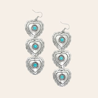 Rockin' C Silver & Turquoise Stone Three Heart Dangle Earrings