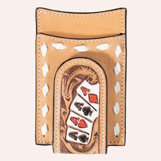 3D Belt Co. Tan Tooled Leather Hand Painted Cards Money Clip