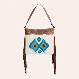 Rockin’ C White & Blue Aztec Print Fringed Shoulder Bag
