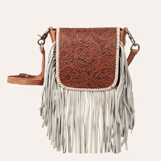 Montana West Brown & Cream Tooled Leather Fringe Crossbody Bag