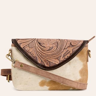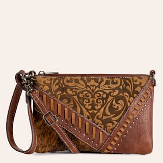 Rockin' C Brindle Hair-On Tooled Leather Wristlet Bag