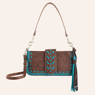 Catchfly Brown & Turquoise Stitched Mini Crossbody Bag
