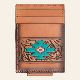 Red Dirt Hat Co. Tan & Turquoise Aztec Tooled Card Case
