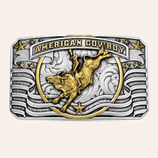 Montana Silversmiths American Cowboy Bull Rider Silver & Gold Belt Buckle