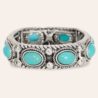 Southern Grace Silver & Turquoise Stone Stretch Bracelet
