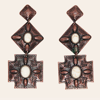 Rockin' C Copper Concho & Cream Stone Post Dangle Earrings