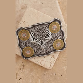 Nocona Silver Whitetail Buck Skull with Shotgun Shells Rectangular Belt Buckle