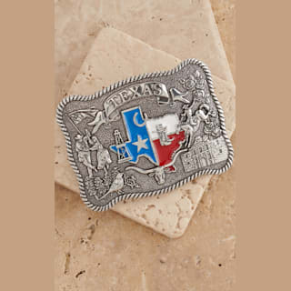 Nocona Silver Rectangle Texas Flag Belt Buckle