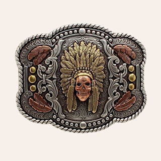 Nocona Silver With Two-Tone Skull Chief Scallop Buckle