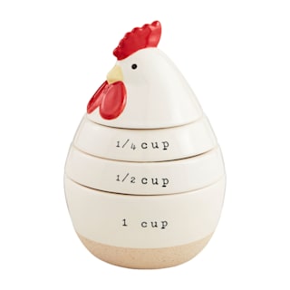 Mudpie White Stoneware Chicken Measuring Cup Set