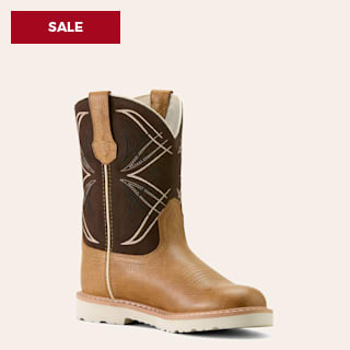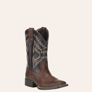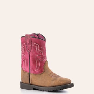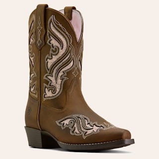 Roper Toddler Girls' Flower Girl Brown & Purple Floral Embroidered Wide Square Toe Cowboy Boots