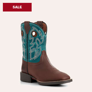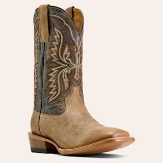 R. Watson Men's Cafe Brown Boar and Blue Punchy Square Toe Cowboy Boots