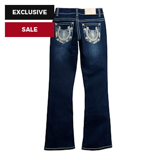 Rockin C Girl's Dark Wash Floral Horseshoes & Bling Bootcut Jeans