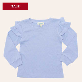Rockin' C Girls' Blue Pointelle Ruffle Long Sleeve Top