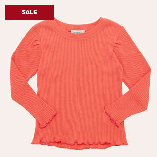 Rockin' C Girls Coral Rib Knit Long Sleeve Lettuce Hem Top