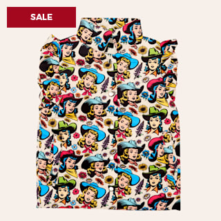 Twisted Filly Girls' Multicolor Cowgirl Print Ruffle Sleeve Pearl Snap Puffy Vest
