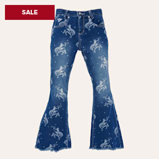Cowgirl Hardware Girls' Desert Bronc Print Medium Wash Flare Jeans