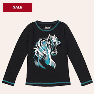 Cowboy Hardware Girls' Black Watercolor Horse Long Sleeve Knit Shirt