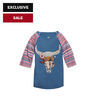 Rockin C Girl's Steel Blue & Desert Aztec Skull Graphic Top