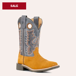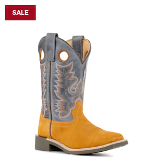 Smoky Mountain Youth Tex Camel Roughout and Light Navy Wide Square Toe Cowboy Boots