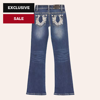 Rockin' C Girl's Medium Wash Floral Scrolling Horseshoe Embroidery Boot Cut Jeans