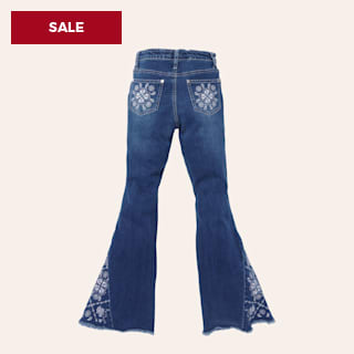 Cowboy Hardware Girls' Medium Wash Paisley Vine Embroidered Flare Jeans
