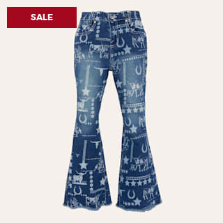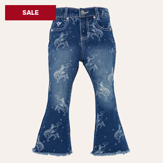 Cowgirl Hardware Toddler Girls' Medium Wash Bronc Print Flare Jeans