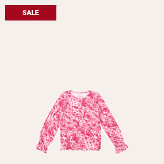 Cowboy Hardware Girls' Pink & White Cowhide Print Long Sleeve Ruffle Hem Shirt
