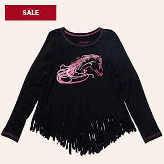 Cowgirl Hardware Girl's Black Bella Horse Fringe Knit Top