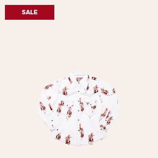 Cowgirl Hardware Girl's White Vintage Cowgirl Print Western Shirt