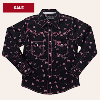 Cowgirl Hardware Girl's Black Branding Iron Print Western Shirt