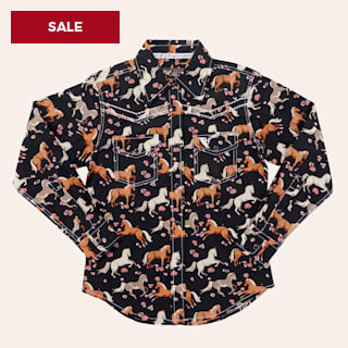 Cowgirl Hardware Girl's Black Horse Flowers Print Western Shirt