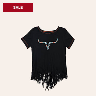 Cowgirl Hardware Girl's Black Ghost Skull Fringe Top