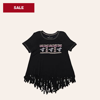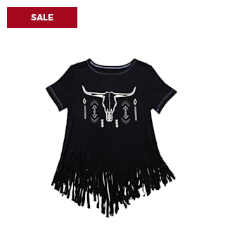 Cowgirl Hardware Girl's Black Aztec Skull Fringe Top