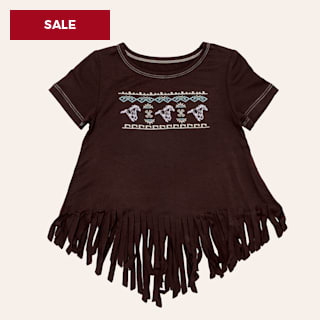 Cowgirl Hardware Girls' Dark Chocolate Horse & Aztec Print Fringed Top