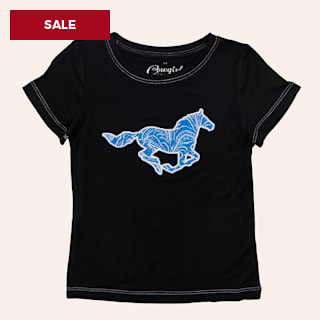 Cowgirl Hardware Girls' Black & Blue Running Horse Embroidered T-Shirt