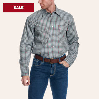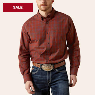 Ariat Men's Red & Navy Plaid Print Western Shirt