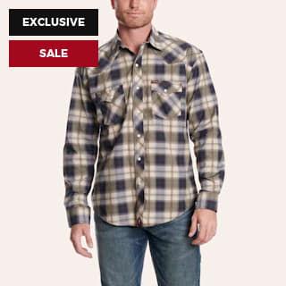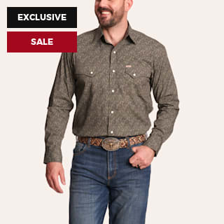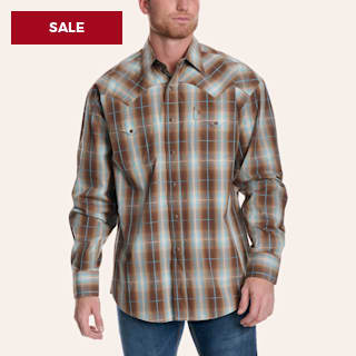 Rafter C Men's Tan & Black Plaid Long Sleeve Western Shirt