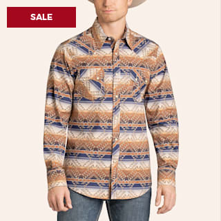 Rock & Roll Denim Men's Brown & Blue Aztec Print Western Shirt