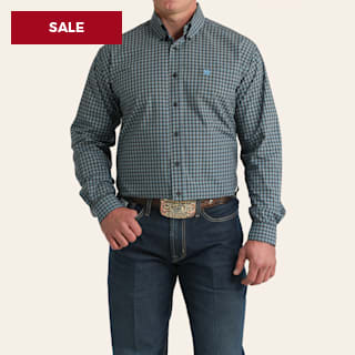 Cinch Men's Brown & Blue Plaid Print Long Sleeve Shirt