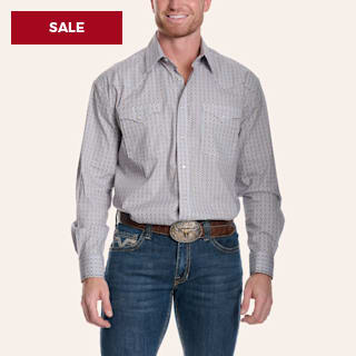 Rafter C Men's Charcoal Geo Print Long Sleeve Pearl Snap Fishing Shirt
