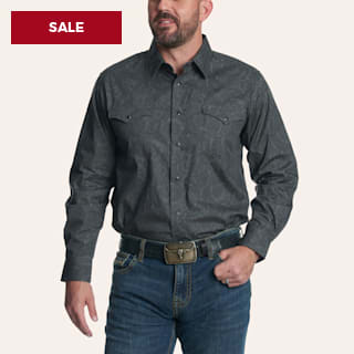 Panhandle Slim Men's Dark Gray Paisley Print Long Sleeve Pearl Snap Western Shirt