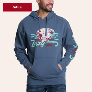 Lazy J Ranch Wear Men's Buster Stone Wash Blue Graphic Hoodie