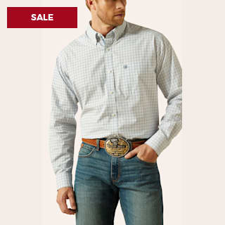 Ariat Men's White Navy & Gray Check Print Western Shirt
